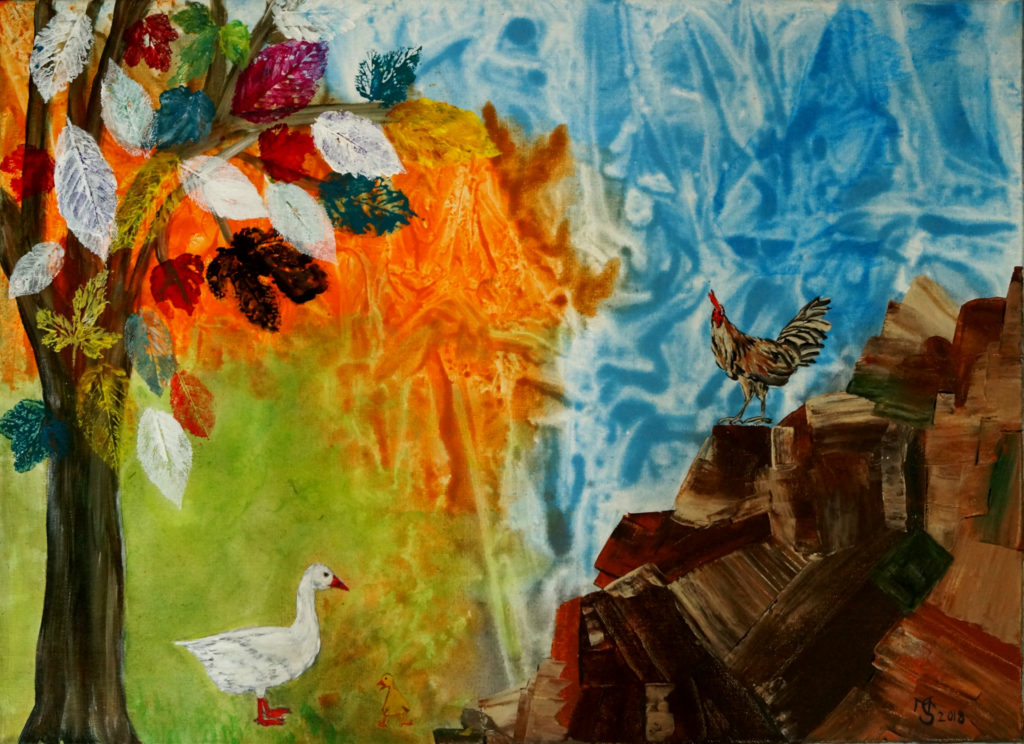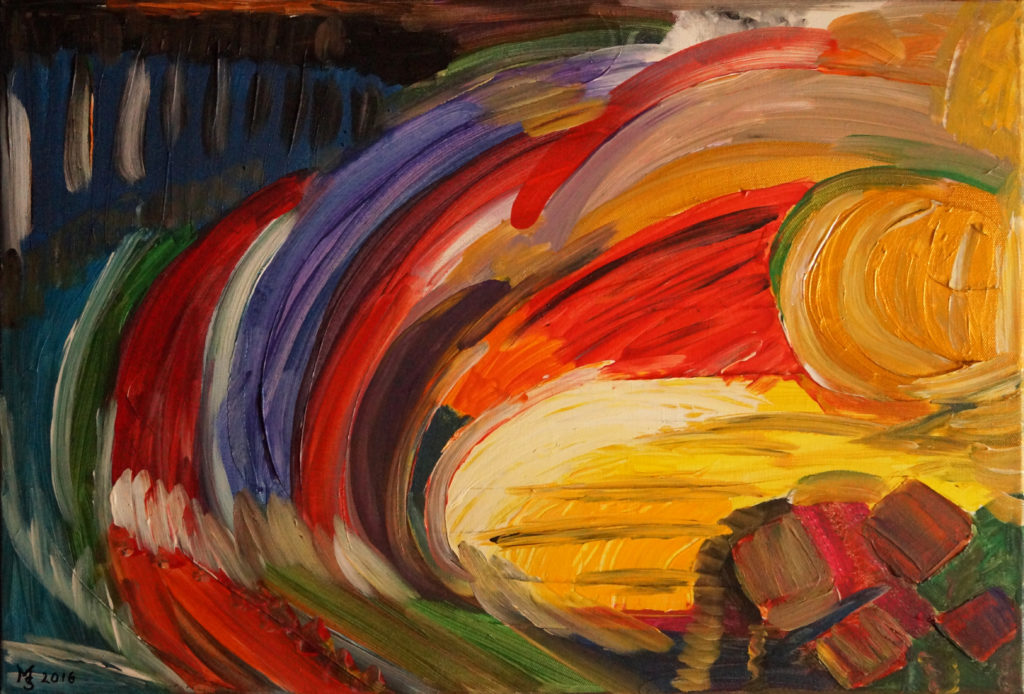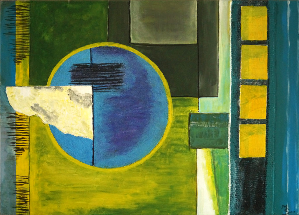 Blaues Quadrat auf gelbem Untergrund, 2017